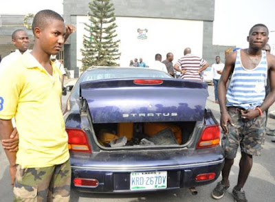 Today , two Air Force Cadets were apprehended by Lagos State Governor’s Convoy for locking a citizen, Dahiru Lawal in the trunk of the car.Abdullahi Fahad (left) and Peter O. Solomon (right) committed the act at Mile 12 on Ikorodu road, Lagos, today Wednesday, December 30. ![]() |