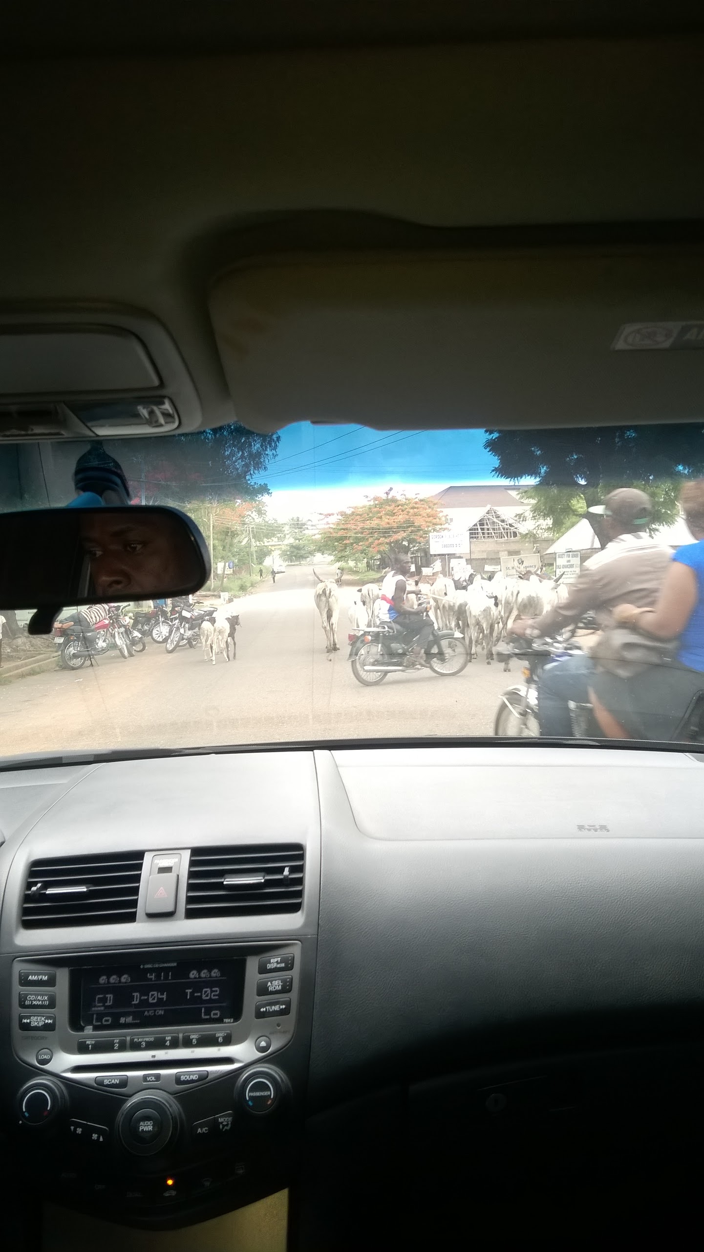 Pictures :Herdsman riding a motorcycle and controlling his cattle in Makurdi.