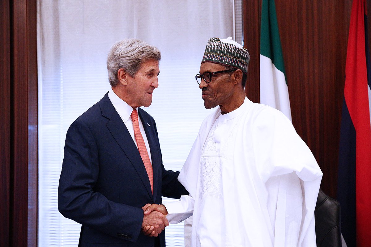 President Buhari and US Secretary of State John Kerry meeting at the State House in Abuja