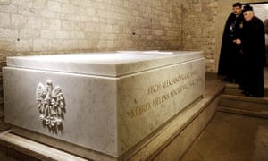 The coffin of Lech Kaczyński and his wife in Krakow, Poland, in 2016. Photograph: Jarek Praszkiewicz/AP