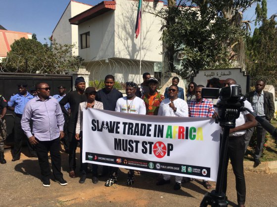 Charly Boy, Deji Adeyanju, and some other Nigerians protested at the Libyan Embassy, Abuja to condemn the slave trade going on in Libya. Photos of some of the slaves which was publicized by Cable News Network (CNN) left many people totally shocked.